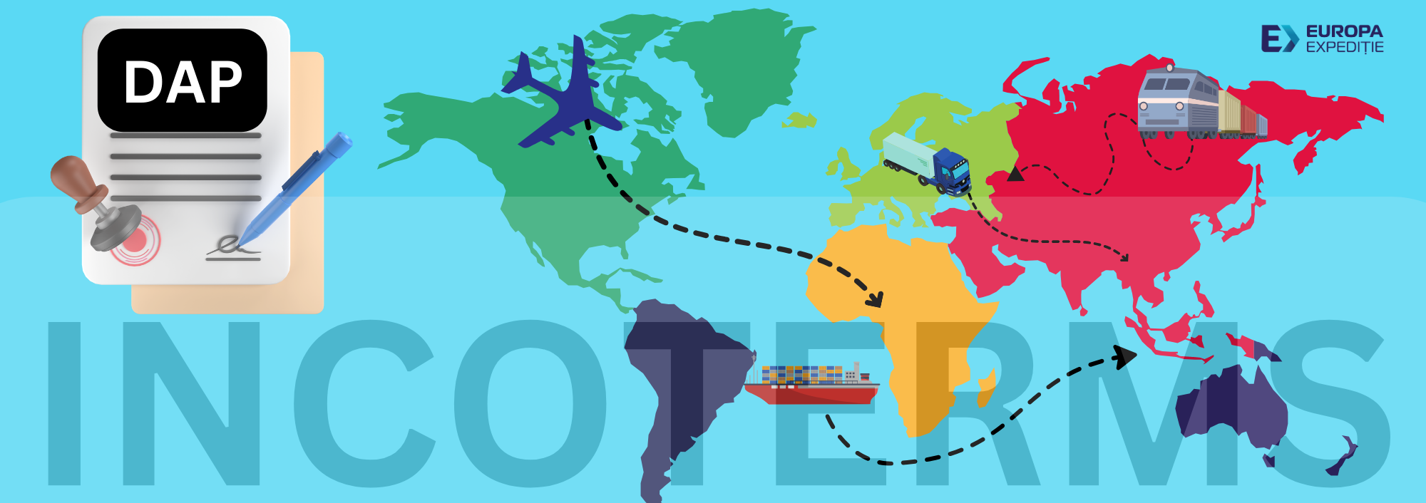 Asa cum am mentionat mai sus, termenul DAP (Delivered at Place) face parte din categoria regulilor aplicabile oricarui tip de transport, fiind si unul din termenii uzuali Incoterms®.